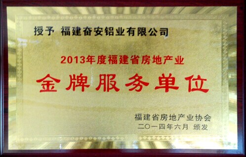 奮安集團(tuán)榮獲“2013年福建省房地產(chǎn)產(chǎn)業(yè)金牌服務(wù)單位”