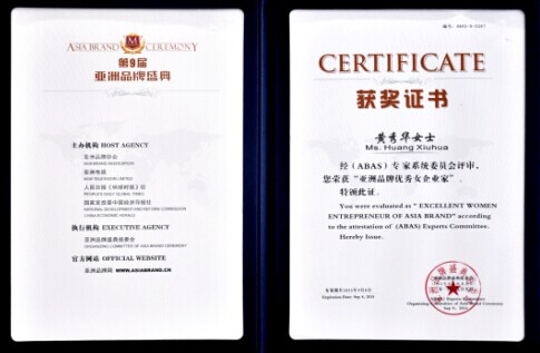 (總經(jīng)理黃秀華女士榮獲“亞洲品牌優(yōu)秀女企業(yè)家”榮譽稱號)
