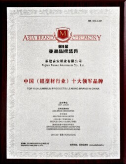 【奮安榮獲榮譽之后的責任與擔當】:感謝奮安友人長期支持與關(guān)愛,奮安在9月9日,榮獲第九屆亞洲品牌所評選的“中國鋁行業(yè)十大領(lǐng)軍品牌”,總經(jīng)理黃秀華女士榮獲“亞洲品牌優(yōu)秀女企業(yè)家”。值此佳際,與您分享奮安人的喜悅,奮安人更加竭盡全力以 “優(yōu)質(zhì)的產(chǎn)品+優(yōu)質(zhì)的服務+愛心”的理念,來生產(chǎn)好產(chǎn)品、服務好客戶(一切只為客戶狂),以積極嚴謹?shù)膽B(tài)度去承擔品牌發(fā)展的責任和挑戰(zhàn),向行業(yè)巔峰攀登,造就中國鋁型材行業(yè)的領(lǐng)導品牌。