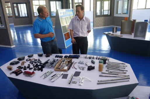 (吳副總在全國最大的門窗體驗(yàn)中心向貴賓介紹我司優(yōu)質(zhì)的配套配件)