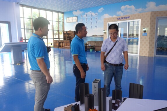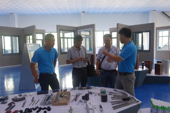 (銷售部人員在全國(guó)最大的門(mén)窗體驗(yàn)中心向貴賓作介紹)