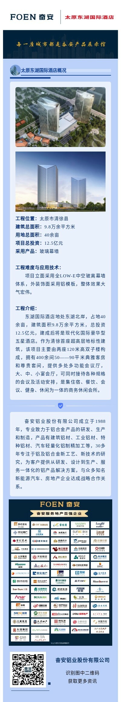 【工程項(xiàng)目案例】太原東湖國(guó)際酒店采用奮安鋁材