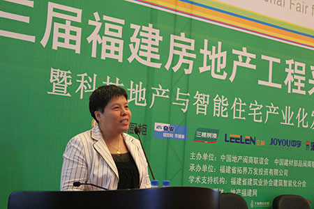 (中國(guó)建材部品閩商聯(lián)盟2013年輪值主席、奮安集團(tuán)總經(jīng)理黃秀華女士為大會(huì)致辭)