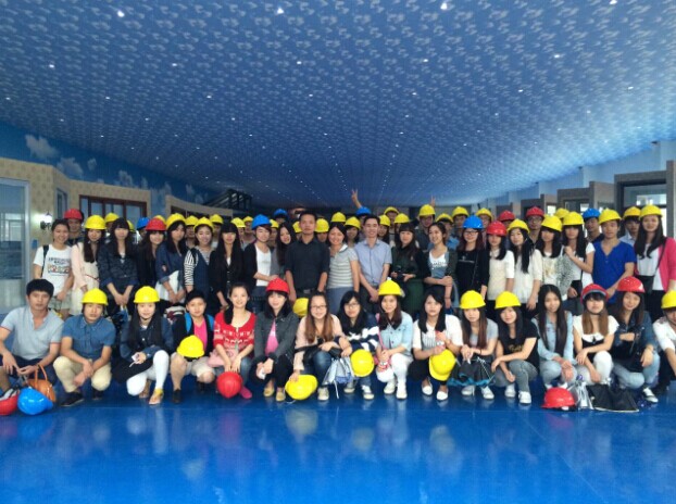 (梁總與全體師生在全國(guó)最大門(mén)窗體驗(yàn)中心合影)