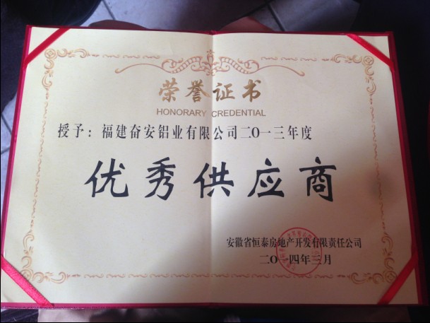 3月14日,奮安集團(tuán)總經(jīng)理黃秀華女士受邀出席安徽省恒泰集團(tuán)2014年度供應(yīng)商洽談大會,在此次大會上,奮安榮獲恒泰集團(tuán)“優(yōu)秀供應(yīng)商”榮譽(yù)稱號。