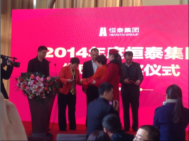 (集團(tuán)總經(jīng)理黃秀華女士接受恒泰集團(tuán)劉紅總裁頒發(fā)的“優(yōu)秀供應(yīng)商”榮譽(yù)證書)