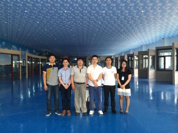 (貴賓們與梁總、林秘書在全國最大門窗體驗中心合影)
