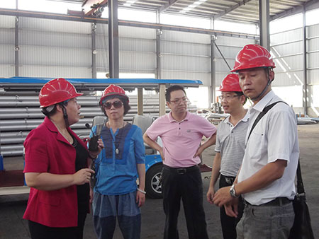 貴賓仔細考察型材生產(chǎn)的每一道工序。在熔鑄車間,貴賓關(guān)注的焦點集中在型材生產(chǎn)的原材料問題上,總經(jīng)理介紹到,我司的原材料是純鋁錠,其保證了生產(chǎn)出來的型材的質(zhì)量;隨后,總經(jīng)理還向貴賓們介紹我司目前擁有的四條立式噴涂線、大噸位擠壓機等先進的生產(chǎn)設(shè)備、注膠隔熱斷橋等卓越的生產(chǎn)工藝;同時,貴賓也贊賞我司懸掛員工語錄的行為,總經(jīng)理表示,員工才是公司的主人,要讓他們自己當家,這樣員工就更有歸屬感、主人翁感。