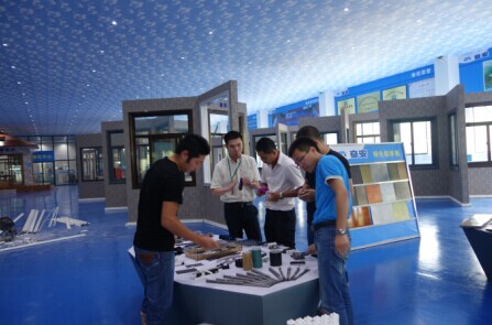 (總監(jiān)在全國最大的門窗體驗中心向貴賓作介紹)